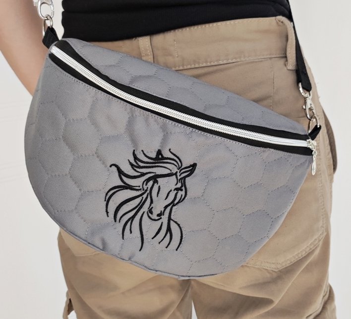 Nerka do noszenia na ramię z regulowanym paskiem, zapinana na suwak, w środku mała kieszonka na suwak.