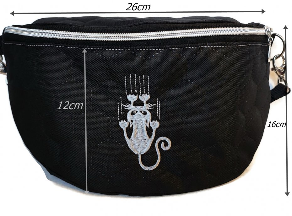 Nerka do noszenia na ramię z regulowanym paskiem, zapinana na suwak, w środku mała kieszonka na suwak.