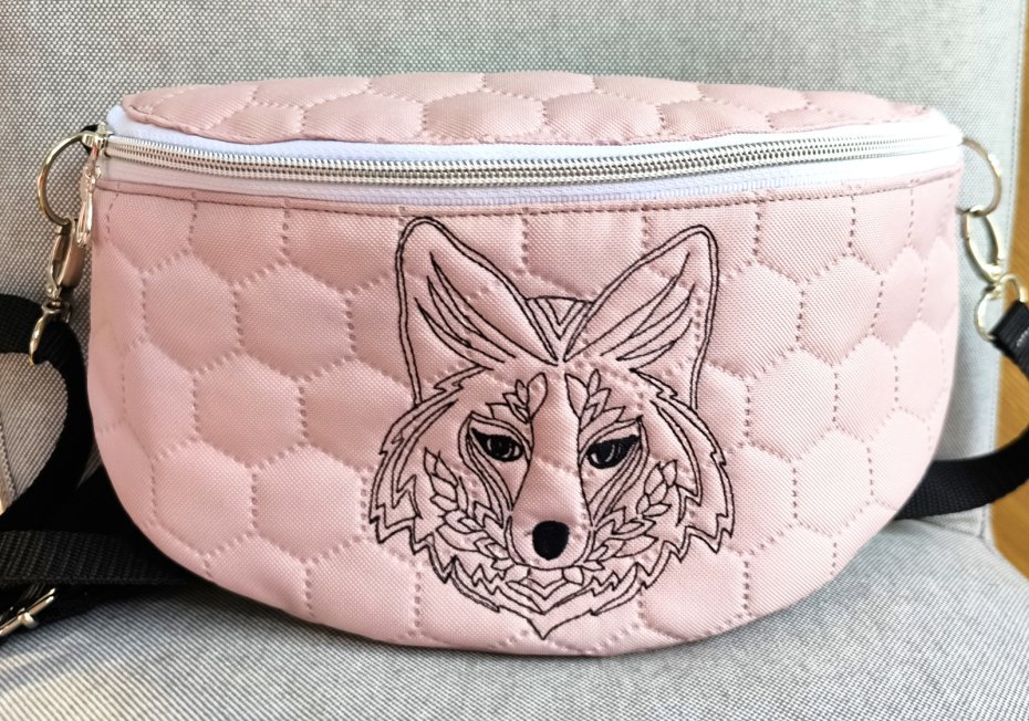 Nerka do noszenia na ramię z regulowanym paskiem, zapinana na suwak, w środku mała kieszonka na suwak.