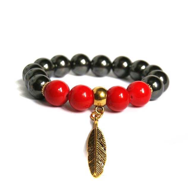 NOWA KOLEKCJA! tutaj bransoletka ze zdj.1 - zobacz pozostałe;-) ... śliczna i niezwykle efektowna bransoletka na solidnej, podwójnej lince elastycznej, wykonana z hematytu grafitowego, z dodatkiem kontrastującego, soczyście czerwonego marmuru (kule 12mm) oraz metalowych elementów w kolorze złota. ... PASUJE NA NADGARSTEK 15-16,5cm.... BIŻUTERIA ZAWSZE PODRÓŻUJE W OZDOBNYM OPAKOWANIU :-) ... uwaga!!! hematyt jest dość ciężki - proszę brać to pod uwagę przy zakupie i kompletowaniu swojego zestawu...