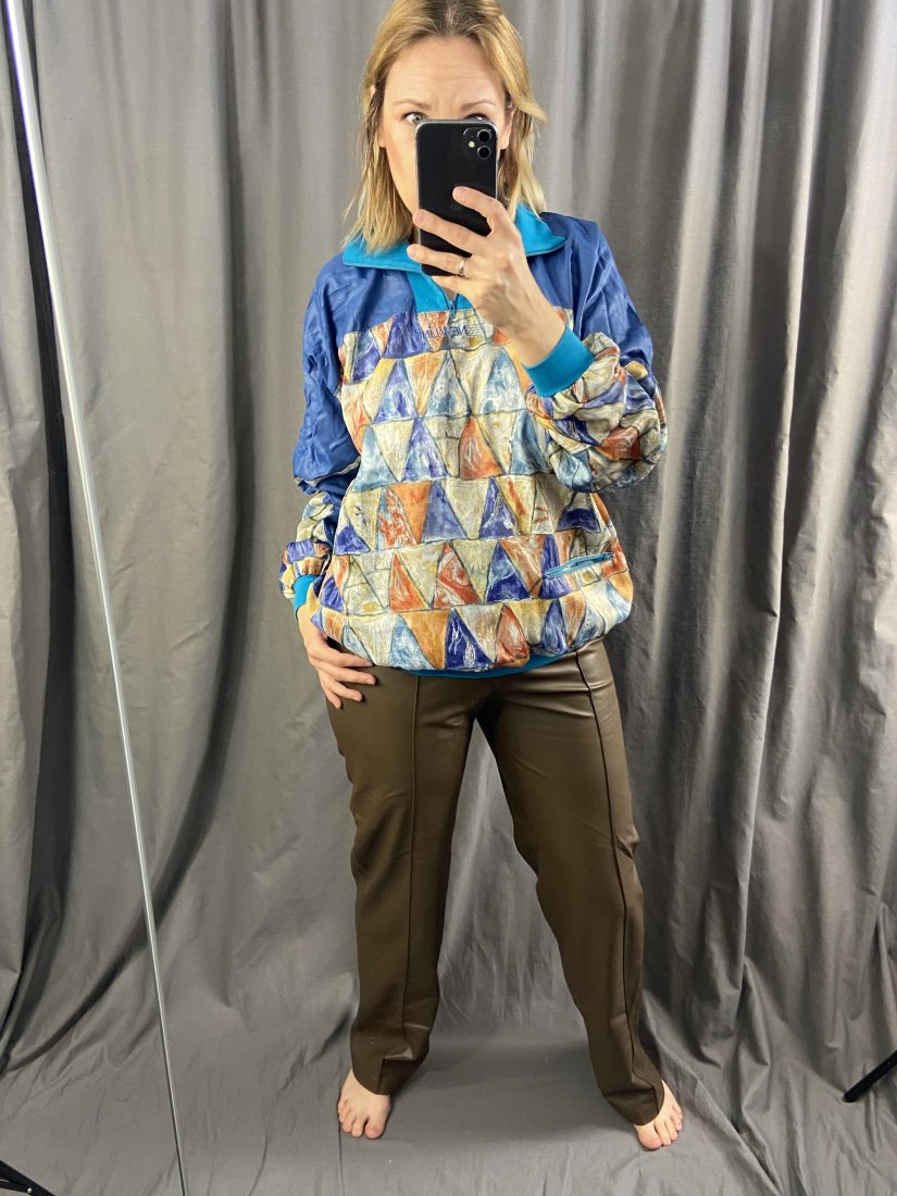 New Line. Boska retro nluza z poliestru sportowego (taki jedwabisty/satynowy), od spodu siateczka.