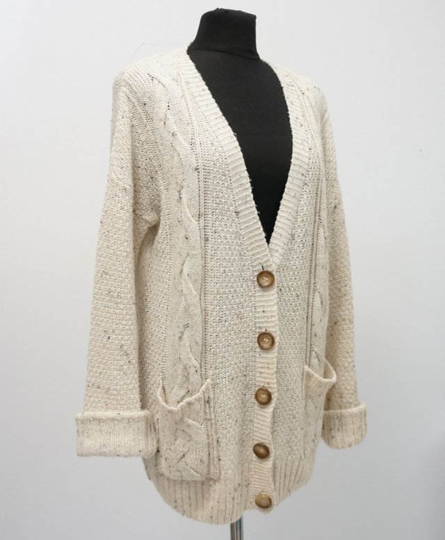 Długi beżowy kardigan na duże guziki