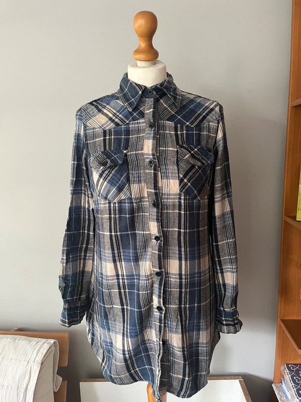 New Look Niebieska Flanelowa koszula w kratkę długa jesień bawełna