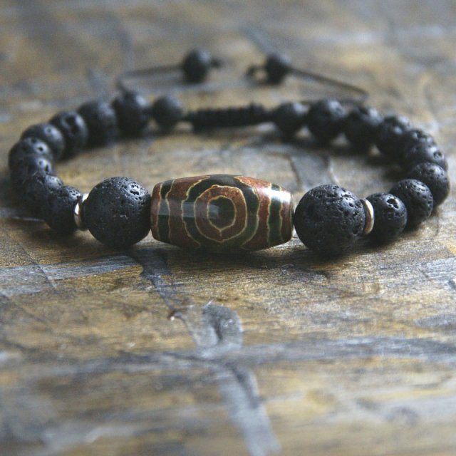NOWE MĘSKIE bransoletki! teraz męskie również na sznureczku, z regulacją! TUTAJ: niezwykle ciekawa bransoletka wykonana z kulek porowatej lawy wulkanicznej(8 i 12mm); element centralny stanowi ogromna beczułka wyjątkowego agatu tybetańskiego (ok.25mm) w kolorze zielono-rudo-brązowym - koraliki nawleczone są na wytrzymały, nylonowy czarny sznurek (o,8mm), długość regulowana za pomocą plecionej przedłużki. ... OBW. WEWNĘTRZNY: min.19cm (+ regulacja) ... ... AGAT TYBETAŃSKI - znaleźć go można w Tybecie i Nepalu, ma ponoć niezwykłe, ochronne właściwości – chroni przed nieszczęściem i chorobami, jest źródłem pozytywnej energii. Ma służyć jako talizman... ... LAWA WULKANICZNA - ma działanie ochronne; działa pobudzająco na przepływ energii w organiźmie. Wykazuje właściwości uzdrawiające dla ciała i ducha; wpływa pobudzająco na umysł.... bransoletka będzie wyglądać dobrze zarówno solo jak i w komplecie... bransoletka stanowić będzie idealny prezent na Dzień Chłopca/ na Gwiazdkę / Walentynki itp. BIŻUTERIA ZAWSZE PODRÓŻUJE W OZDOBNYM OPAKOWANIU :-).... UWAGA!!! TA BRANSOLETKA JEST NAPRAWDĘ MASYWNA, WIĘC RÓWNIEŻ DOŚĆ CIĘŻKA - proszę brać to pod uwagę przy zakupie.