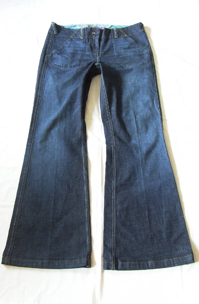 Świetne jeansowe spodnie z dodatkiem elastanu zapinane na zamek i guzik. Spodnie posiadają dwie kieszonki z przodu oraz dwie atrapy kieszonek z tyłu. Nogawka rozszerza się ku dołowi.