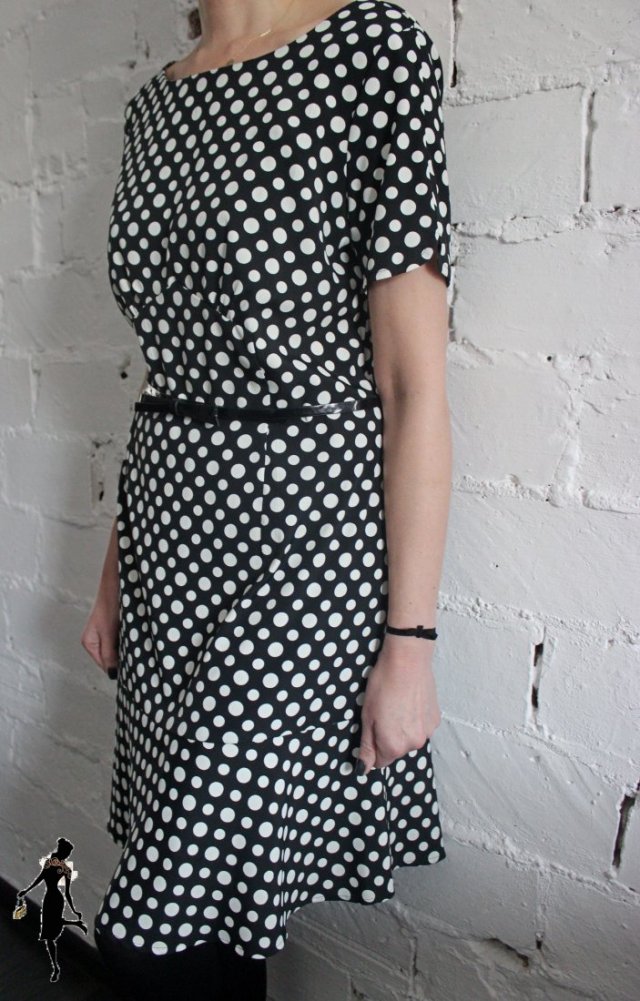 Sukienka w kropki. Firma Next. Rozmiar z metki 42/XL. Wymiary: obwód biustu-50cmx2, obwód pasa-44cmx2, obwód bioder-55cmx2, długość sukienki-98cm. Skład materiału: 100% poliester.