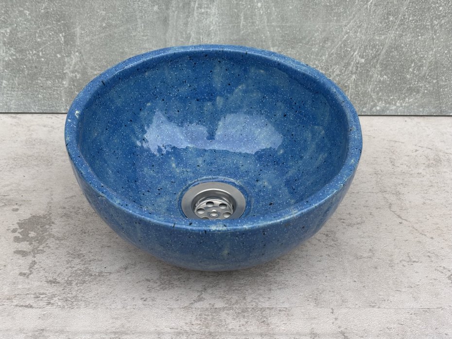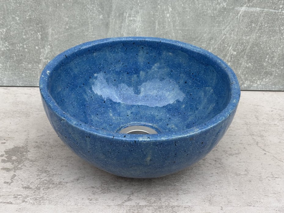 Nieduża i nietypowa umywalka nablatowa idealna do niewielkich łazienek i toalet. W całości wykonana ręcznie, trwała i odporna na codzienne użytkowanie. Przeznaczona do montażu na szafce lub blacie, pozwala na oszczędność miejsca i większą swobodę w projektowaniu.