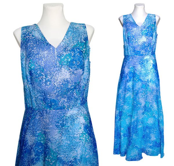 Unikat! Bardzo ładna sukienka w niebieskich kolorach! Uszyta z tkaniny syntetycznej. Rozmiar 38. Wymiary rzeczywiste podam na życzenie. W środku podszewka. Zapinana z tyłu na zamek. Stan: jak nowa! NIE POCHODZI Z SECONDHANDU.