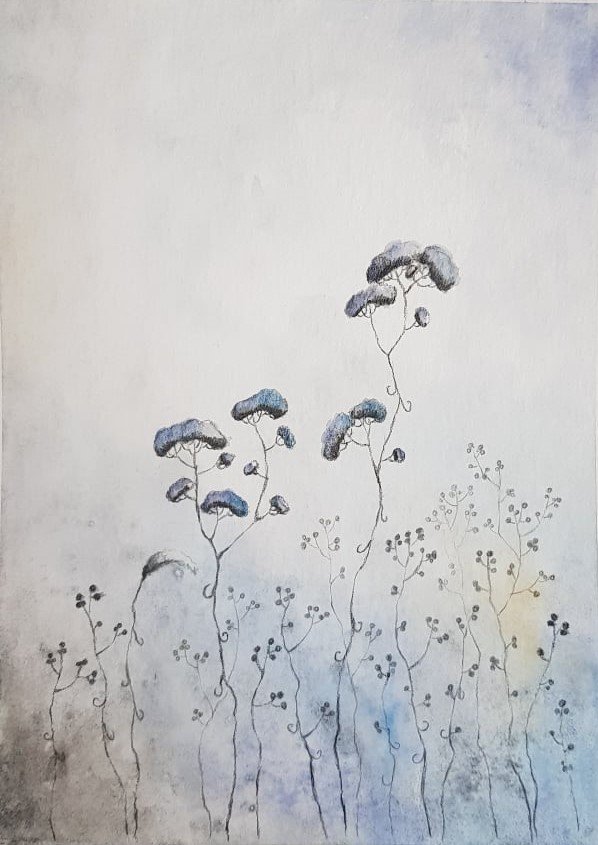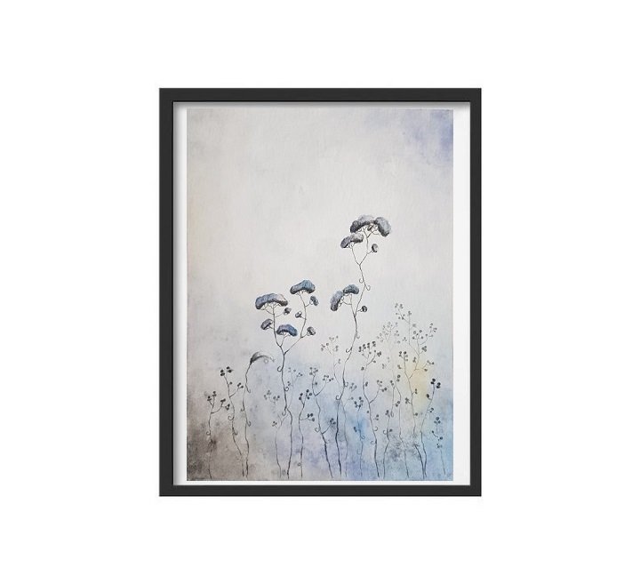 Praca wykonana farbami akwarelowymi i kredkami na grubym papierze akwarelowym 425 g/m2, format 24/32 cm. Sprzedawana bez prezentowanej ramy. Zapraszam :)