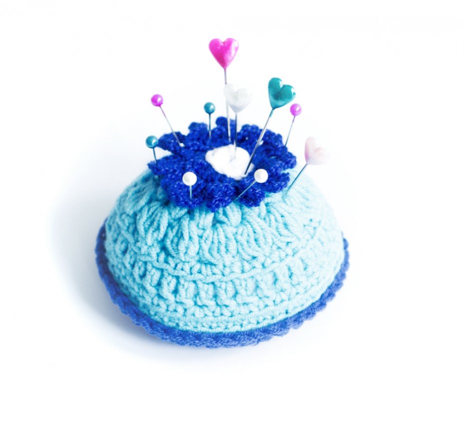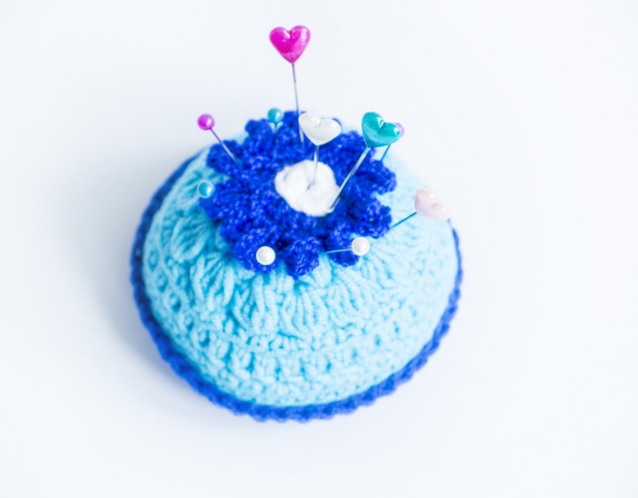 Urocza, wyjątkowa poduszeczka na igły zrobiona na szydełku z włóczki.