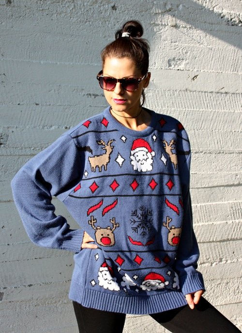 Niebieski sweter w mikołaje i inne motywy,stan bardzo dobry,rozm uniwersalny