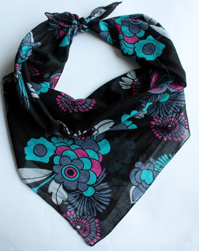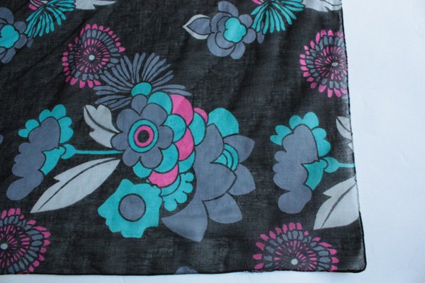 Oryginalna chusta w kwiaty. Materiał to prawdopodobnie bawelna lub wiskoza.