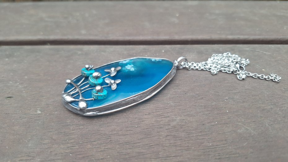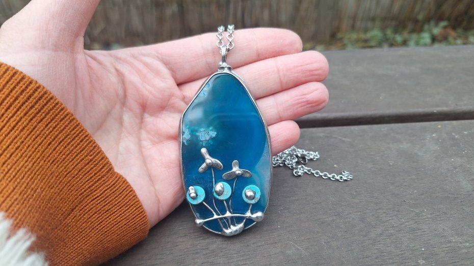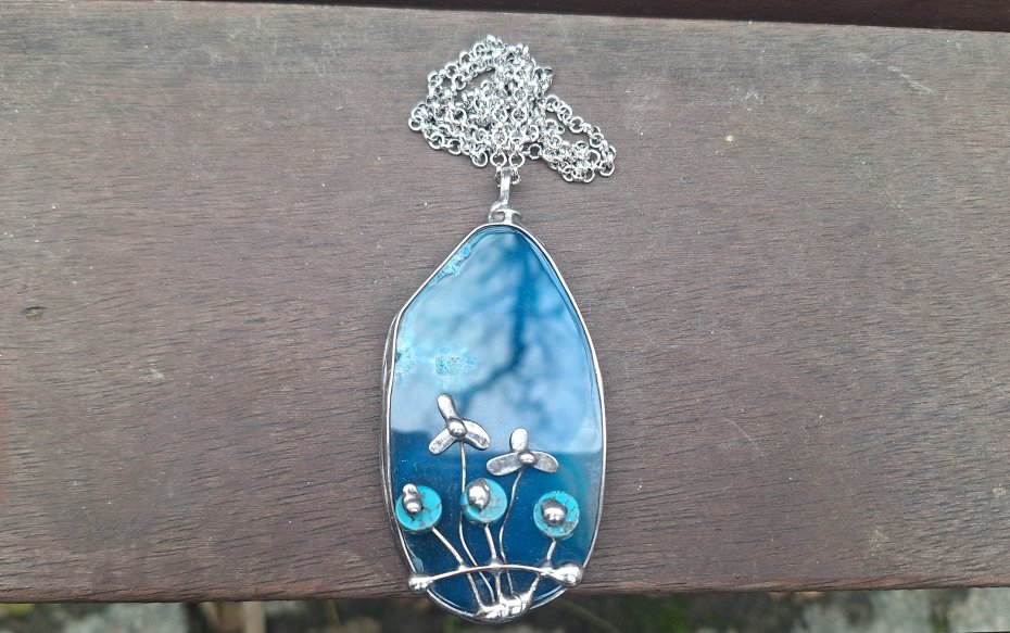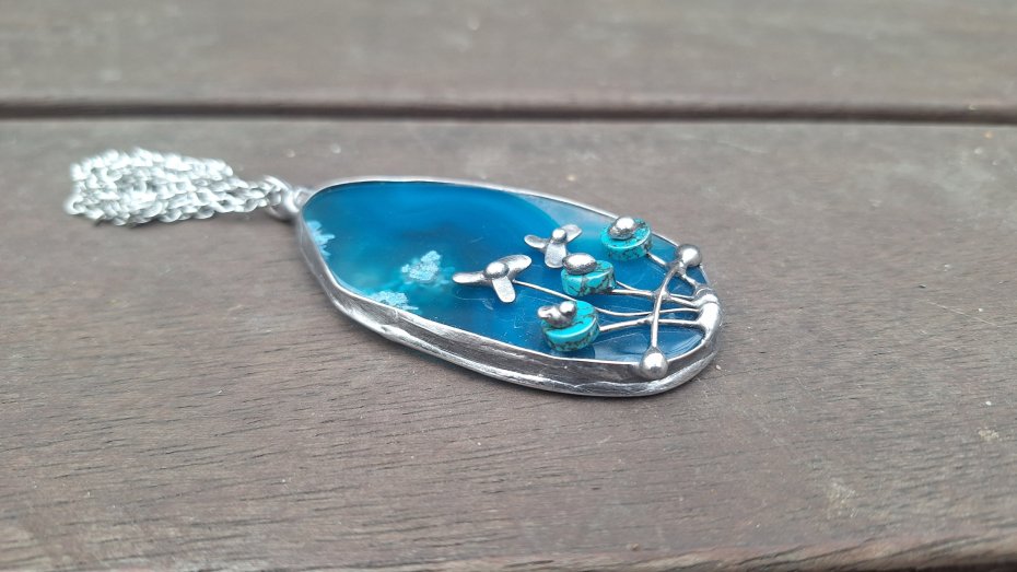 Tagi: #agat, #niebieski wisiorek, #wisiorek z agatem, #wisiorek z kwiatami