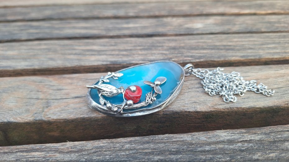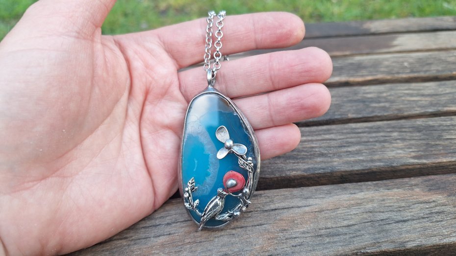 Tagi: #kolorowy wisiorek, #prezent dla niej, #wisiorek z agatem, #wisiorek z ptakiem