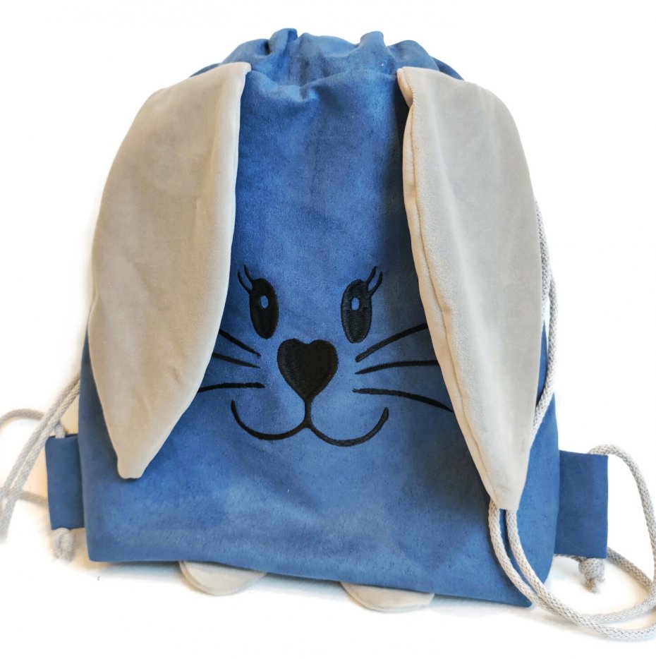 Różowy worek, uszy uszyte z milutkiego materiału, w środku kolorowa podszewka,