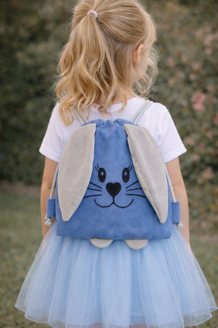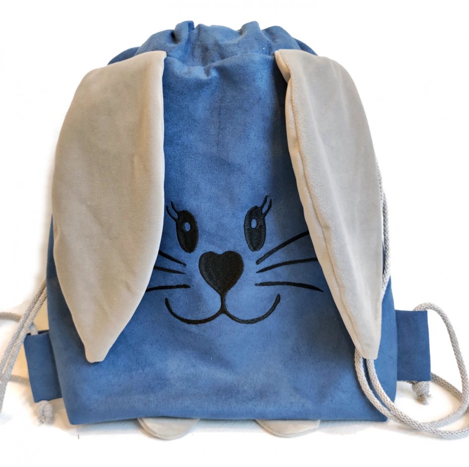 Różowy worek, uszy uszyte z milutkiego materiału, w środku kolorowa podszewka,