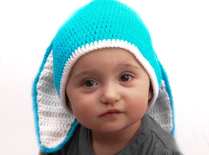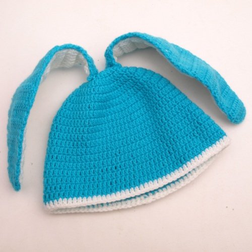 Czapka z uszkami zajączka. wiosenno-wielkanocna :) rozmiar:46-50cm, czyli będzie dobra na dzieci w wieku: 1-3l. podobne czapki dziergamy również na malutkie główki, na większe główki i całkiem duże głowy :) W celu zamówienia innego rozmiaru bądź koloru, prosimy o kontakt przez formularz kontaktowy. Zapraszamy!