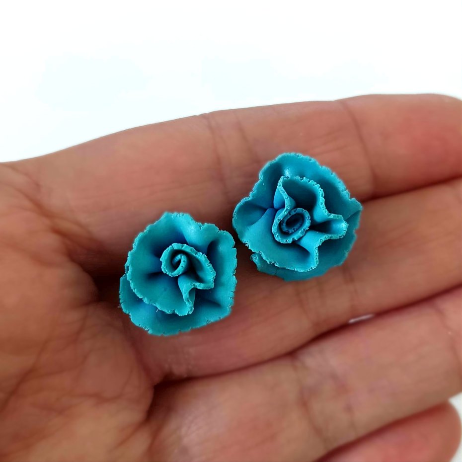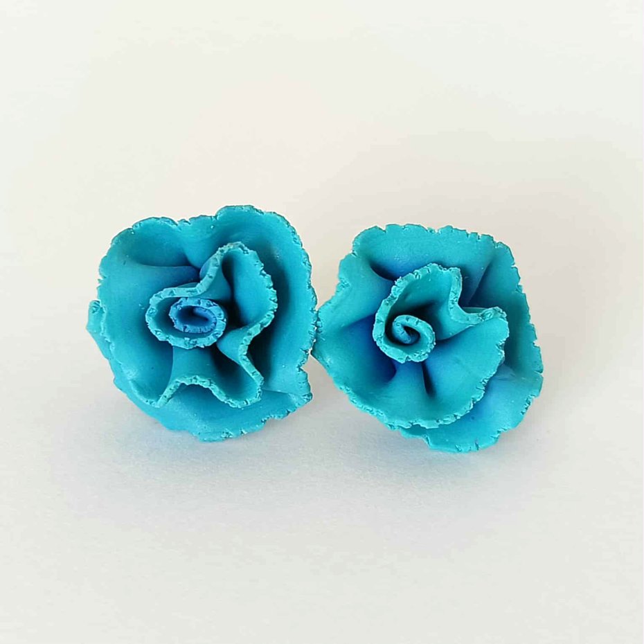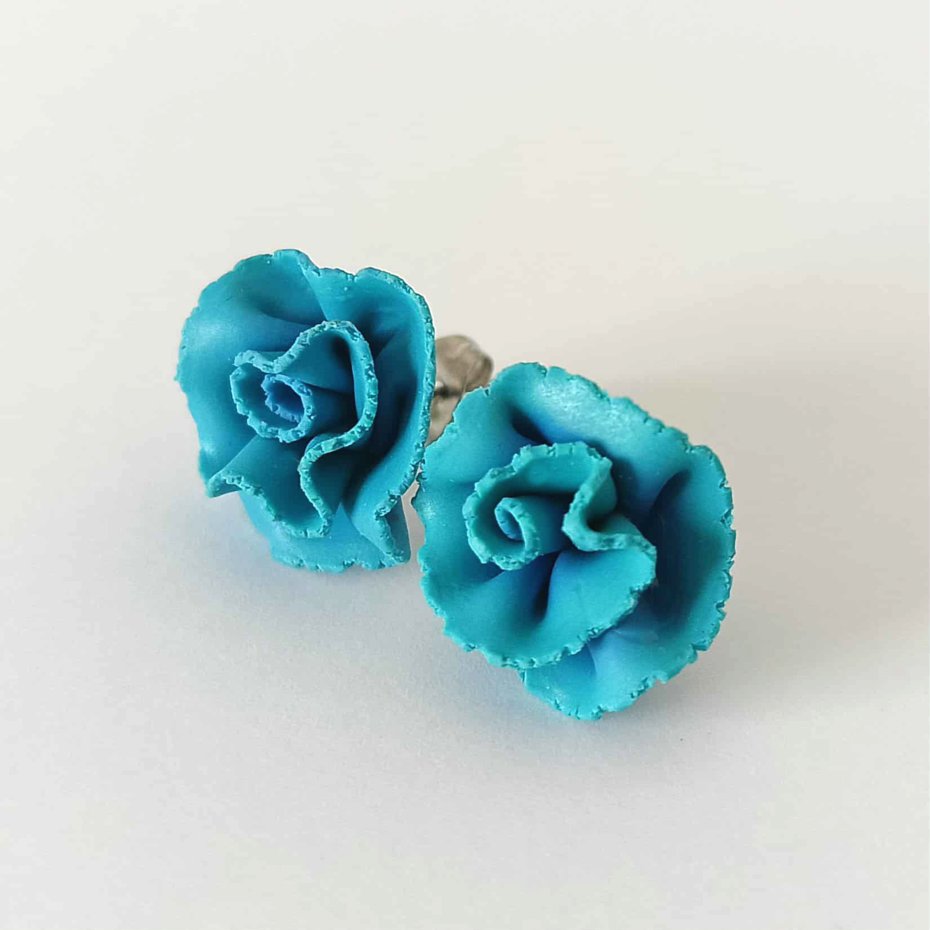 Urocze kolczyki w kształcie delikatnych niebieskich różyczek, wykonane ręcznie z masy polimerowej. Każda para jest unikatowa i powstała z dbałością o najmniejsze detale. Idealne dla miłośniczek subtelnej, kwiatowej biżuterii. Lekkie i wygodne w noszeniu, doskonałe na co dzień lub jako drobny prezent.