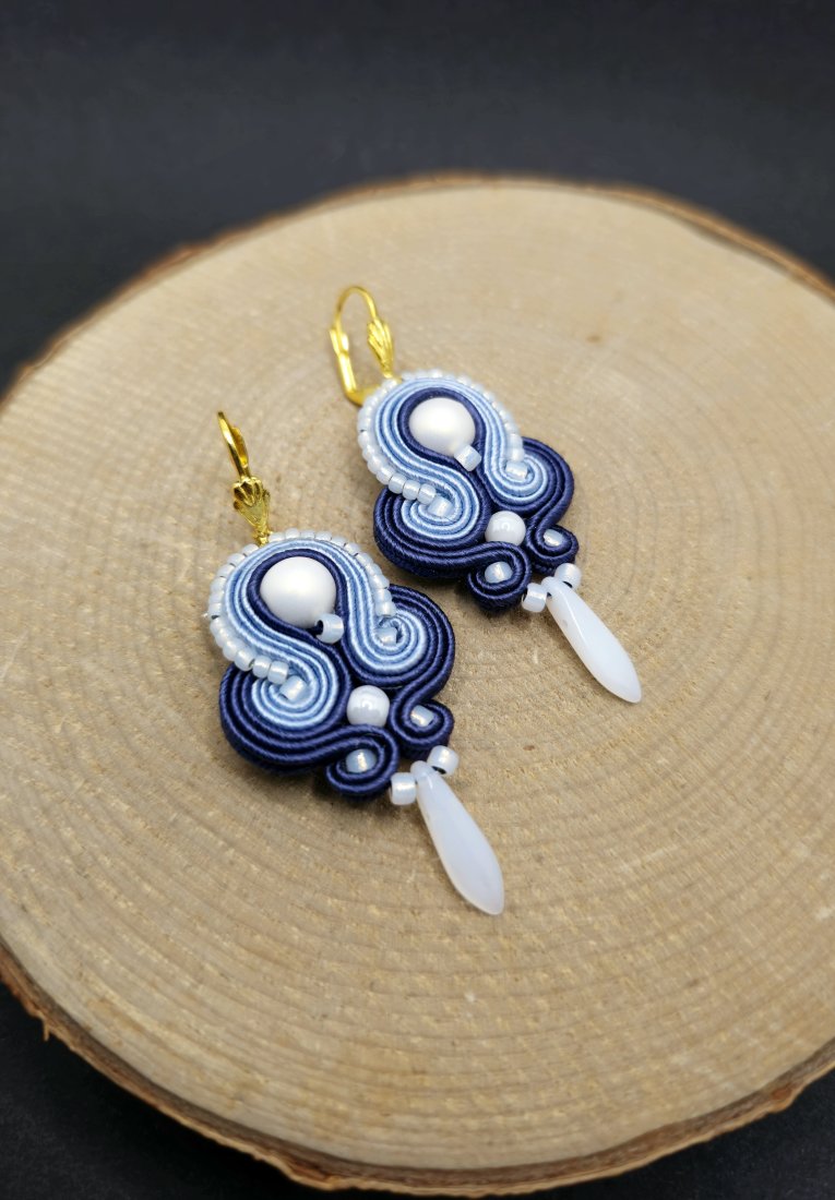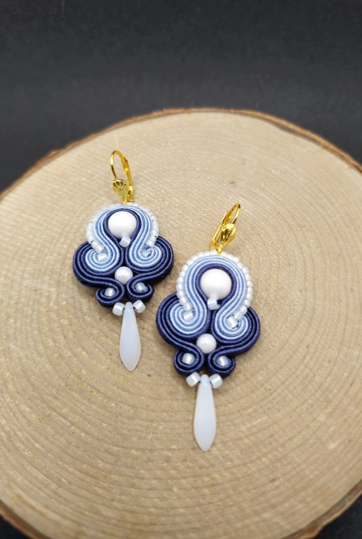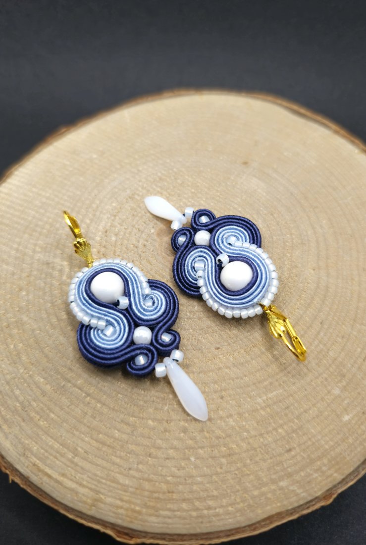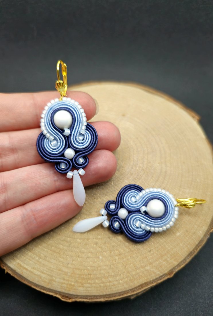 Tagi: #haftowane kolczyki, #sutasz, #szklane koraliki, #wiszące kolczyki
