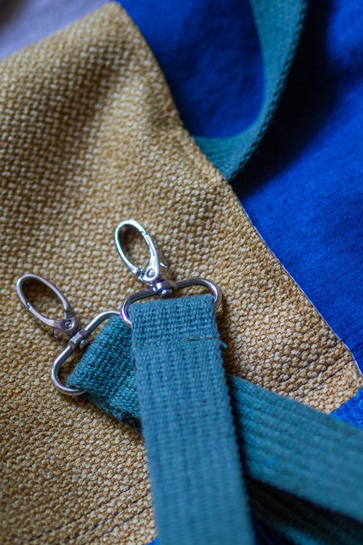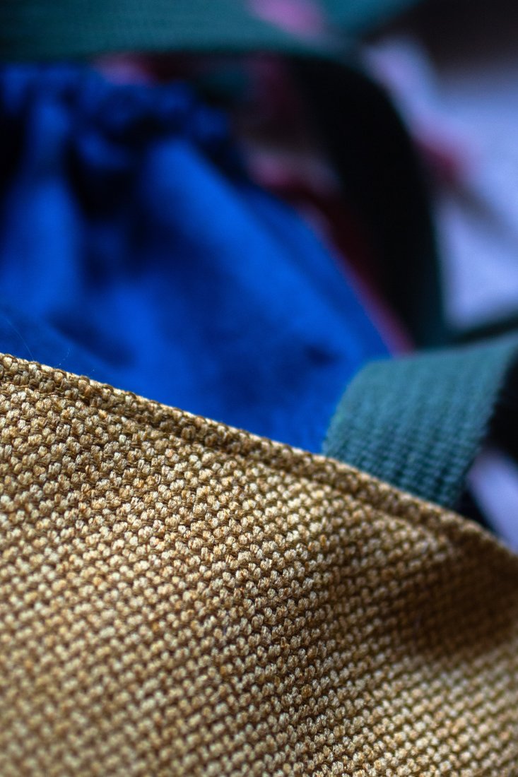 Torba worek wykonana z kilku rodzajów tkanin. Stworzona w duchu no waste.