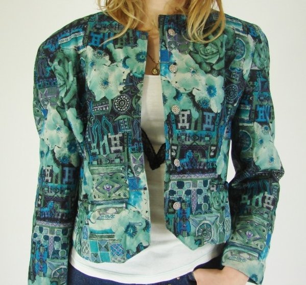 Wzorzysty żakiet. Na ramionach wbudowane poduszki.