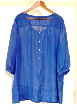 Koszula ma fason lekkiego, szerokiego trapezu; rękaw 3/4 zakończony cienkim mankietem z guziczkiem.