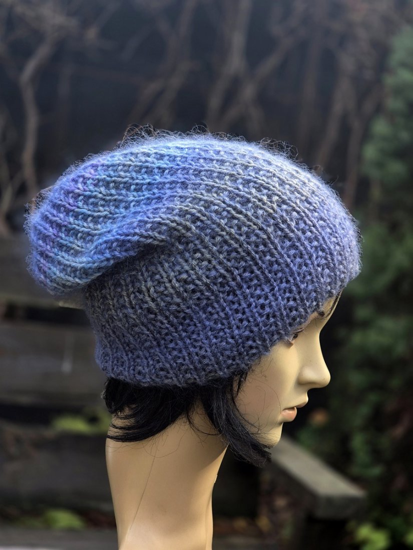 Ciepła i miękka czapa wykonana ręcznie na drutach z włoskich włóczek, przyjemna w dotyku. Czapka jest bezszwowa i dwustronna, wysokość czapki pozwala na jej wywinięcie.