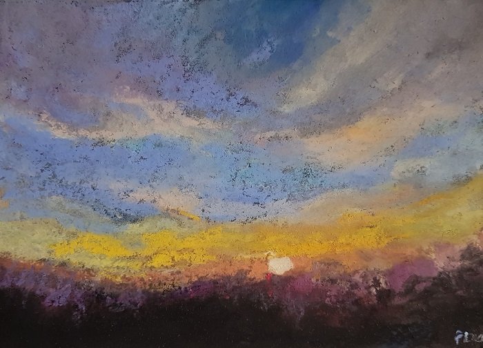 Praca wykonana pastelami suchymi na papierze przeznaczonym do pasteli 250g/m2, format A5. Praca zabezpieczona fiksatywą. Zapraszam :)