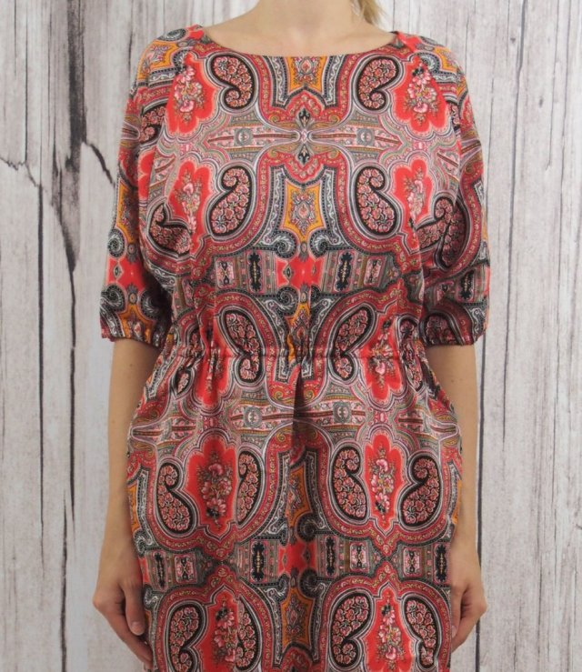 Piękna sukienka z poliestru z lat 70-tych. W piękny etniczny wzór.
