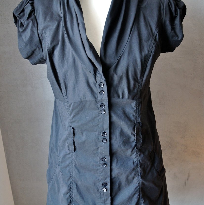 Uszyta z idealnie czarnej, gładkiej tkaniny bawełnianej (trochę przypomina batyst).