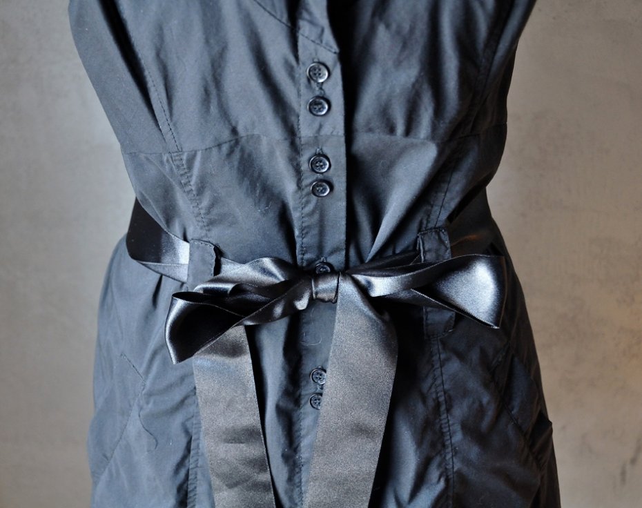 Uszyta z idealnie czarnej, gładkiej tkaniny bawełnianej (trochę przypomina batyst).