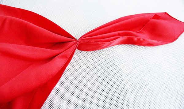 Chusta w oryginalnym, trójkątnym kształcie, z marszczeniami. Materiał to prawdopodobnie poliester.