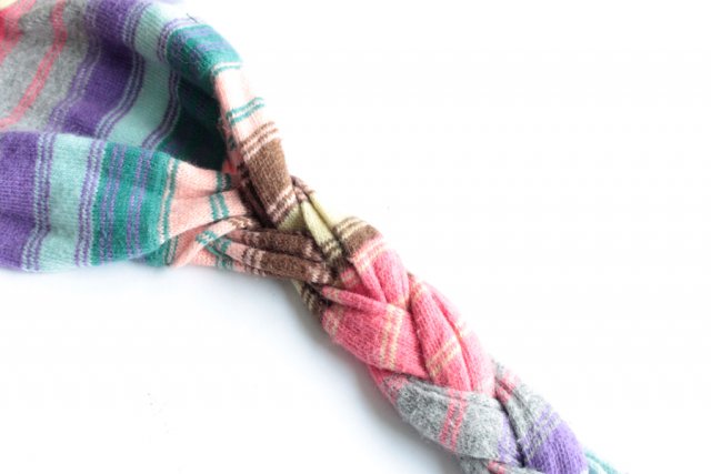 Długi szal o niezwykłym fasonie. Można nosić na różne sposoby.