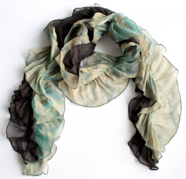 Oryginalny szal wykonany z wielobarwnych falban. Materiał to prawdopodobnie wiskoza.