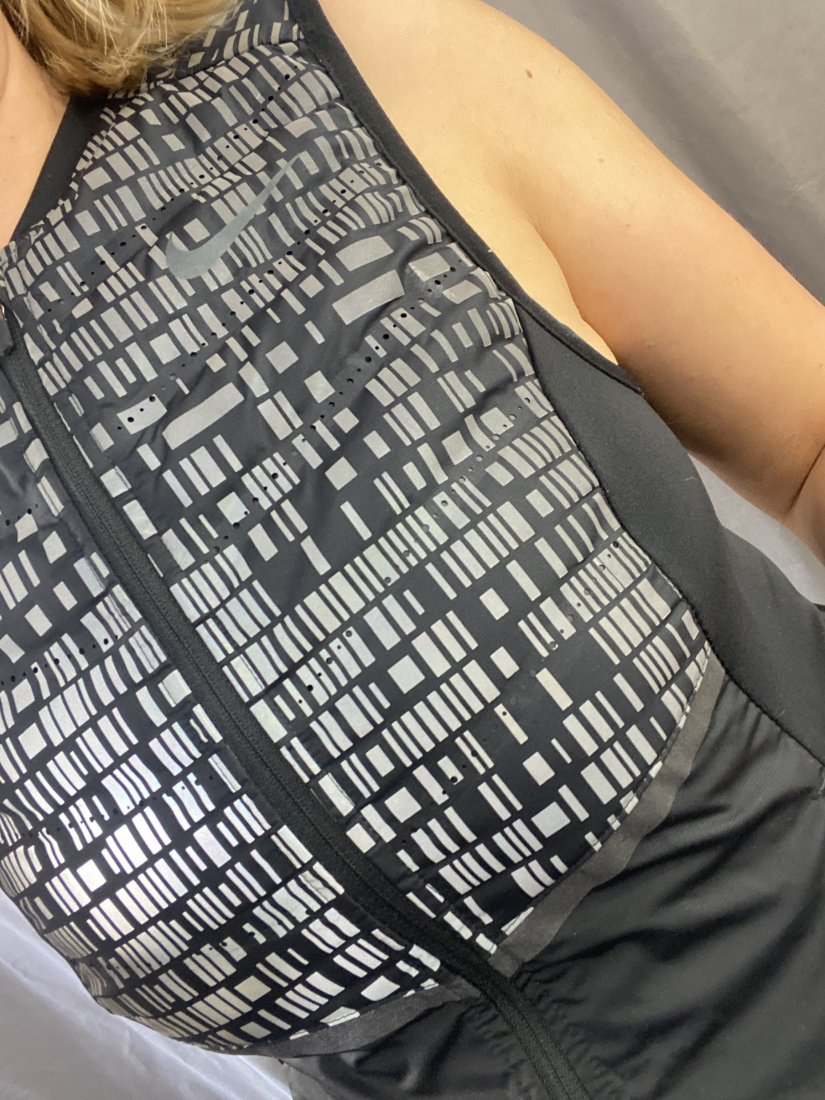 Nike Running. Kamizelka sportowa, z zapinanymi na zamek kiesoznkami. Delikatnie ocieplana - przód-tył - te miejsca gdzie są wzorki.