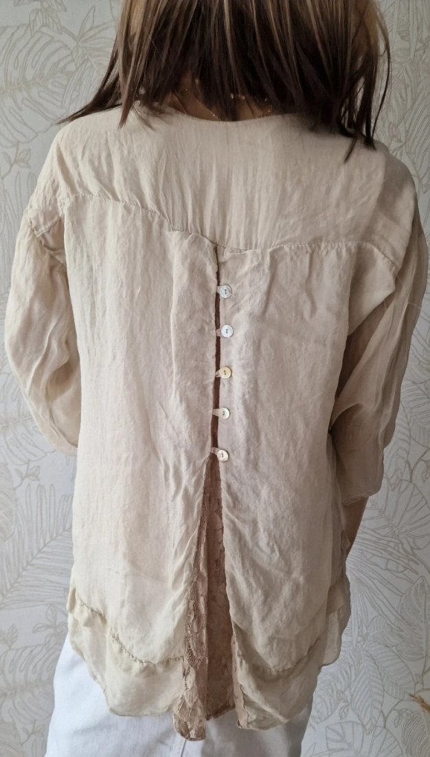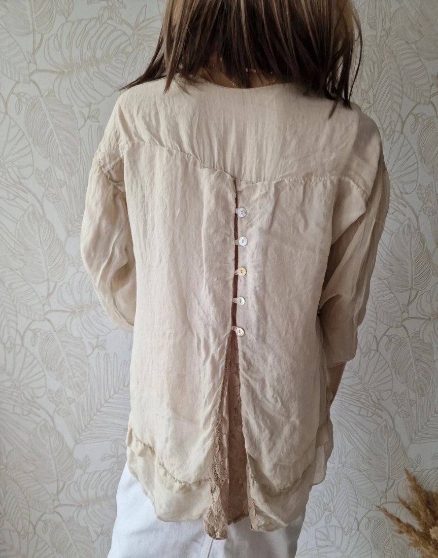 Beżowa bluzka na długi rękaw.
