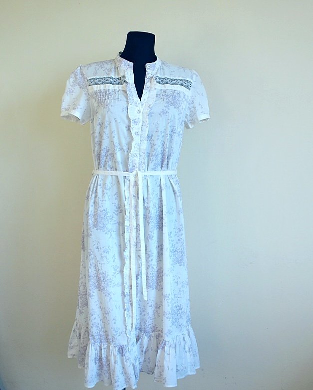 Dziewczęca, letnia sukienka marki Noa noa. Materiał 100% cieniutka, bawełna, idealna na upał. Materiał w kolorze kremowym z delikatnym fioletowym, kwiatowym wzorem. Fason prosty ,luźny. Wstawki z koronki. Rozpinana, guziczki obciągane materiałem. Rozmiar z metki M, powinna pasować na 38-40. Niewielkie ślady użytkowana. Podaję wymiary mierzone na płasko;