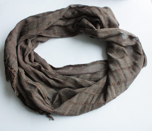 Niesamowity duży szal NOA NOA o luźnej, surowej strukturze. Materiał to prawdopodobnie bawełna lub wiskoza. Kolor: mleczna czekolada.