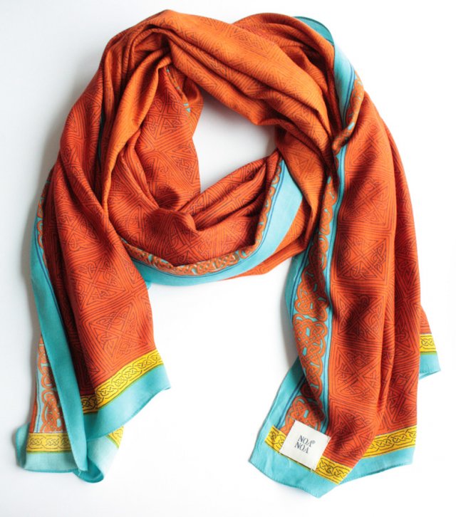 Duży, miękki szal marki NOA NOA. W kilku miejscach struktura materiału jest niejednorodna, jak widać na zdjęciu.