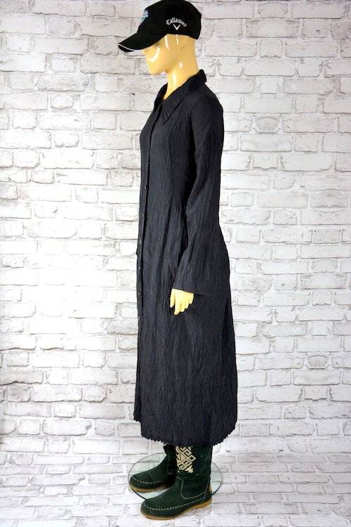 Rewelacyjna długa sukienka-narzuta- jak kto woli, wykonana z jedwabiu (materiał jest fabrycznie pomięty)- krój luźny, na całej swej długości zapinana na guziki, wiązana. W okresie letnio-wiosennym świetnie się sprawdzi jako płaszczyk.