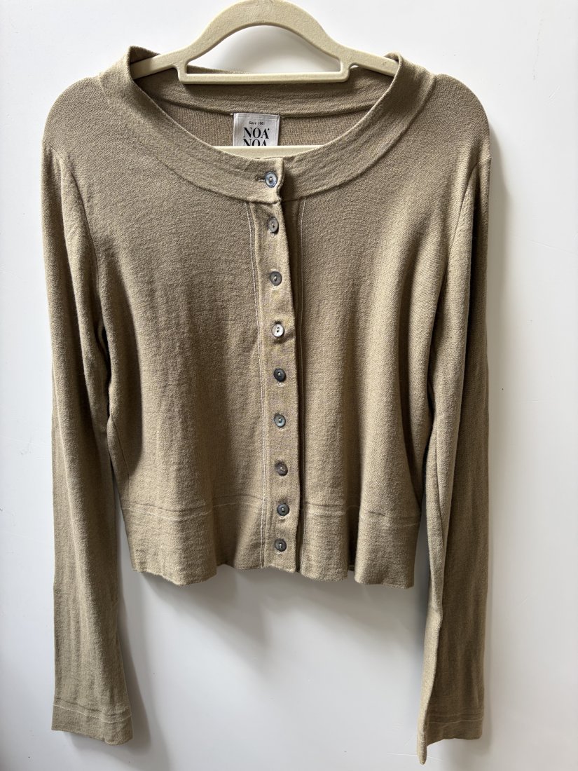 Tagi: #kaszmir bawełna, #krótki sweter masa perłowa, #noa noa sweterek zapinany, #sweter vintage oliwka