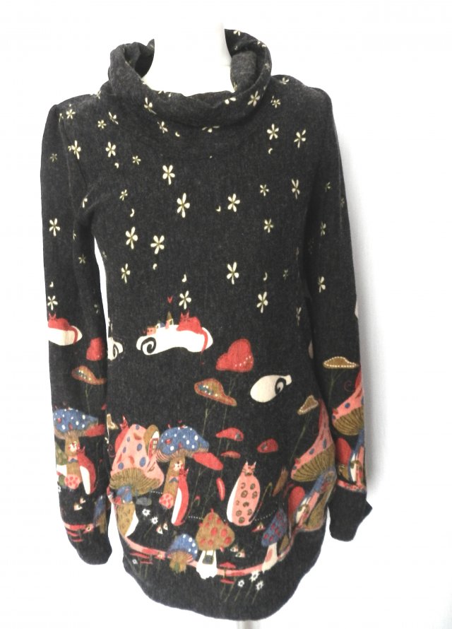 Sukienka/tunika z magicznym nadrukiem kolorowych muchomorów, kotów, gwiazdek