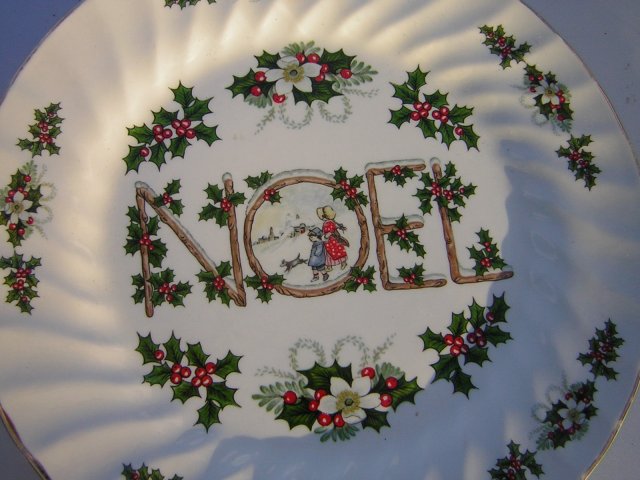 Duży porcelanowy talerz użytkowy, dekoracyjny, okolicznościowy. Sygnowany Fine English Tableware NOEL MADE IN ENGLAND 17. Mocna, solidna Porcelana w kolorze białym. Wykończenie satynowo - błyszczące. Ryflowania i lekko falbankowy rant. Złocenia na rancie. Wzór kolorowy, radosny. Użytkowy, ale piękną i oryginalną dekoracją świątecznego wnętrza być może. Nie tylko stołu. Dodaję profesjonalny uchwyt do powieszenia.