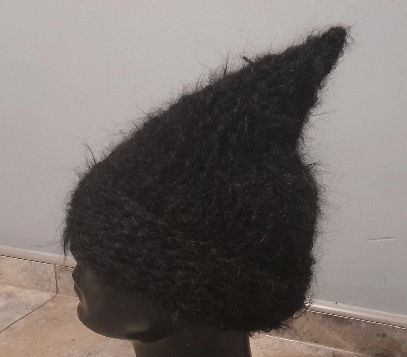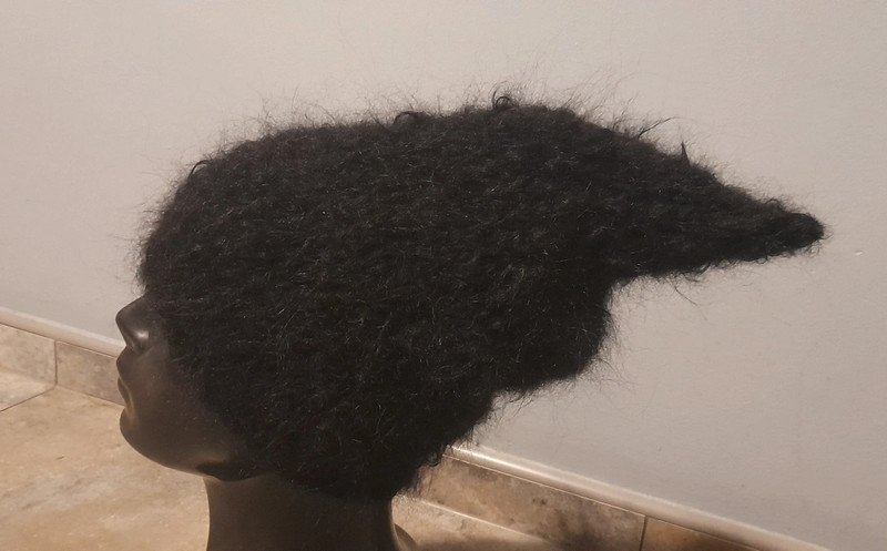 Wykonana na drutach z najwyższej jakości włóczki moherowej głowa manekin jest ok 1/3 mniejszy od przeciętnej głowy realnej