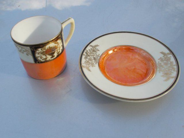 Pięknie zdobiona filiżanka ze spodkiem z cienkiej, szlachetnie prześwitującej porcelany, sygnowana NORITAKE Made in . Japan. Eleganckie złocenie, w części ręcznie malowane, na stosownie bogate :) Biel i kremowe ecru z kroplą wanilii, oraz ognisty pomarańcz.