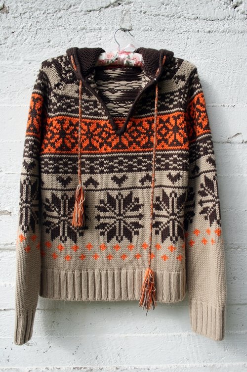 Brązowy ciepły sweter wnorweskie wzory, rozmiar L. Fishbone