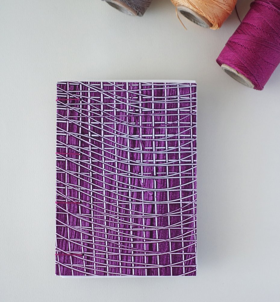 Notes w pełni i od podstaw wykonany ręcznie – od cięcia i składania papieru, poprzez wykonanie okładki i dekoracyjnego papieru oraz zszycie notesu lnianymi nićmi w jedną całość za pomocą tradycyjnego, dekoracyjnego ściegu.