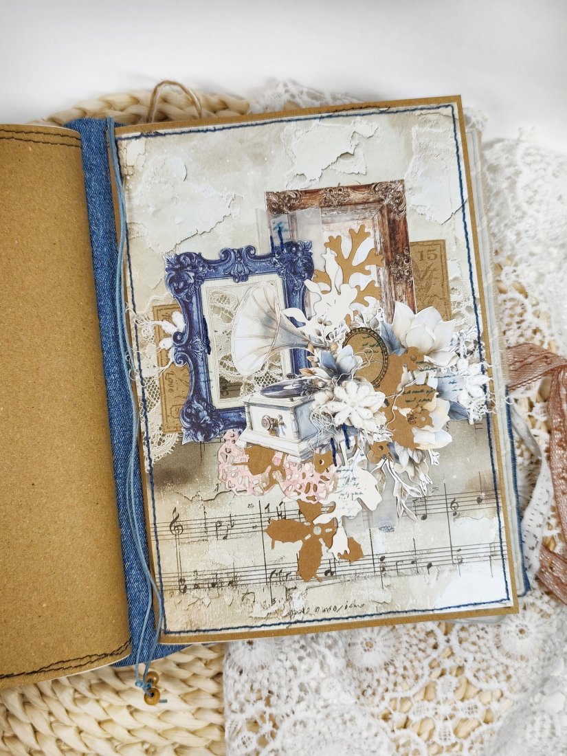 Ten junk journal to małe okno do świata marzeń, wspomnień i inspiracji. Wykonany ręcznie z miłością, łączy tkaninę, koronkę, kwiaty oraz elementy w stylu vintage, tworząc wyjątkowy klimat.