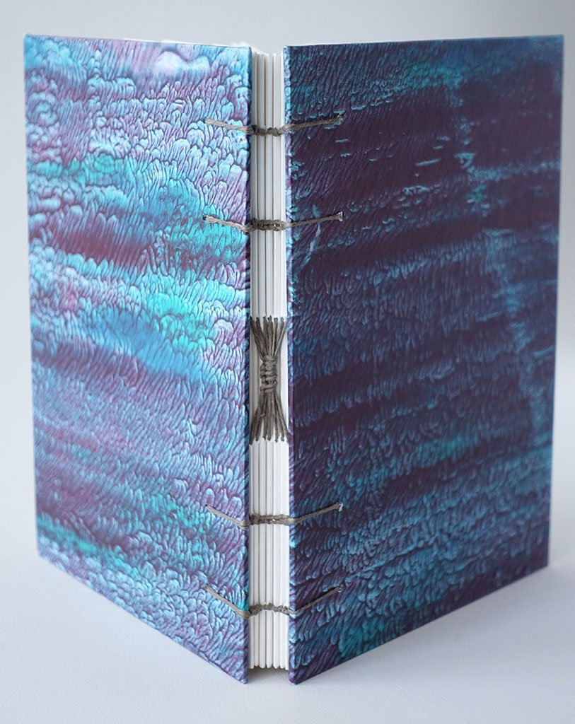 • twarda okładka pokryta autorskim, ręcznie malowanym, niepowtarzalnym papierem