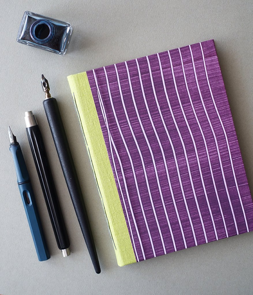 Notes z lnianym grzbietem i dekoracyjnym widocznym szyciem
